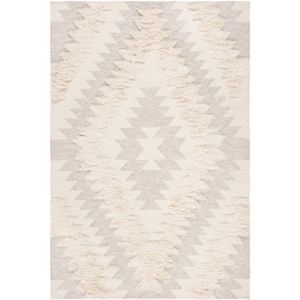 Featuring a monochromatic color palette this white rectangular area rug showcases horizontal bands of black stripes that are accented with irregular stripes in white for a playful twist to the simple design.